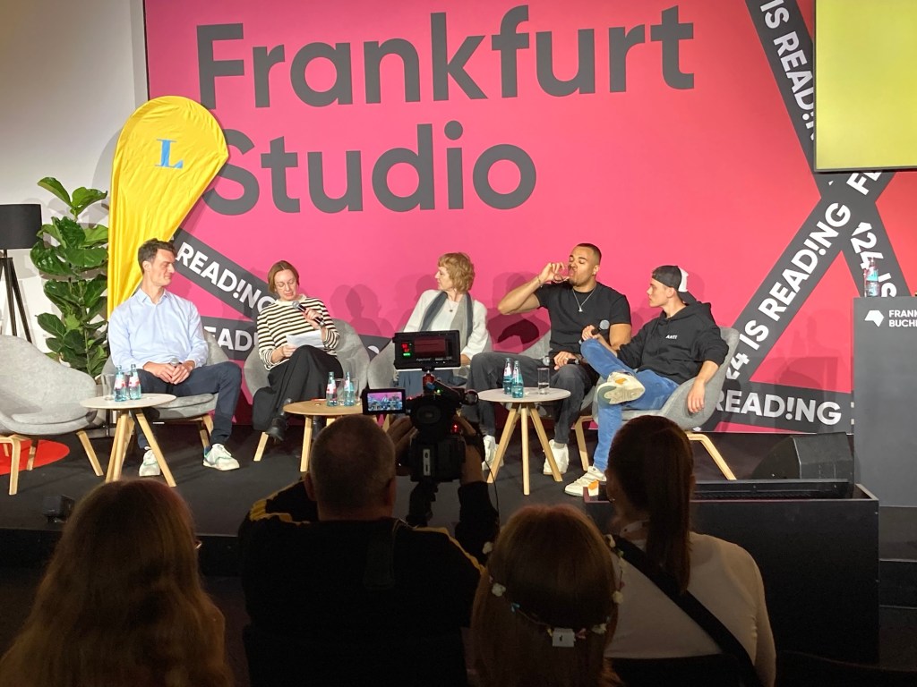 Dann geht die Show los. Zwei jüngere Frauen stellen die diesjährige Kampagne vor, die eine etwas zu sehr aufgeregt, die andere beantwortet ihre Fragen und es klingt alles sehr nach Marketing. Dann kommt der große Auftritt von Marvin TSP, noch so ein Influencerwesen, der für die Verkündigung des Jugendwortes ein Video gedreht hat. Er verkörpert in dem Filmchen die 10 Jugendwörter, die die meisten Stimmen erhalten haben und am Ende des Films gibt er bekannt, das Aura das Jugendwort des Jahres geworden ist. (Wenn einem die Entscheidung nicht gefällt, muss man übrigens sagen, das sei 500 Minusaura). Nun ist es raus und wir alten Menschen können uns wieder schlafen legen. Allerdings entsteht im Nachgang zur Verkündung des Jugendwortes des Jahres eine launige Podiumsdiskussion um Jugendsprache. Man hat noch eine Frankfurterin Professorin eingeladen, die zum Thema forscht und sie ist ein wahrer Gewinn für die Runde. Im Wechsel mit Marvin TSP ergibt sich ein generationenübergreifender kleiner Diskurs über die Veränderung der deutschen Sprache. Das Wort Cringe zum Beispiel hat es geschafft zu bleiben. Auch ältere Menschen nutzen es, weil es bisher dafür kein passendes Wort in der deutschen Sprache gab. Andere Worte tauchen kurz auf und verschwinden schnell wieder. Aber leider saßen wieder mal im Publikum die Leute, denen das klar ist, dass sich Sprache verändert und sich den gesellschaftlichen Rahmenbedingungen anpasst. Die anderen, die Gendergaga brüllen sobald man ein Innen an ein Nomen hängt, bleiben wie jedes Jahr leider zu Hause. Sie hätten an der Stelle viel lernen können.