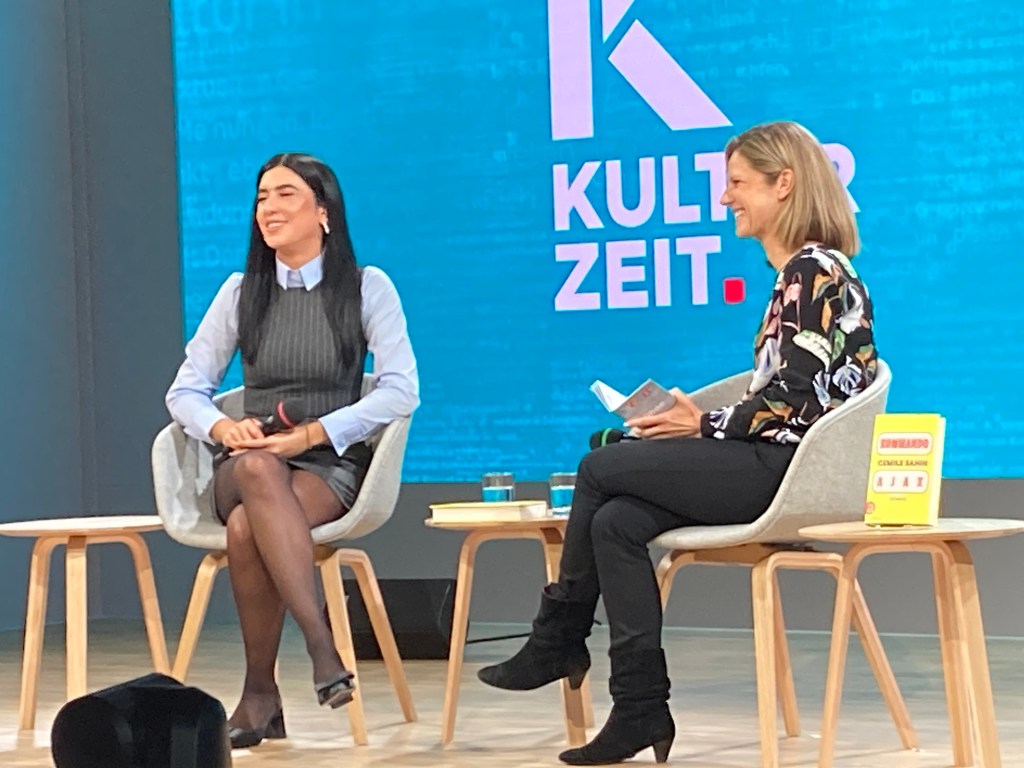 Wir können nicht alle Stempel einholen, weil ich ins Forum will und dort auf der Literaturbühne von ARD,ZDF, 3Sat das Gespräch von Cemile Sahin mit Ariane Binder verfolgen möchte. Vor ein paar Wochen wurde im Spiegel ihr neues Buch „Kommando Ajax“ ausgiebig vorgestellt und ich wollte mehr erfahren. Cemile Sahin hat kurdische Wurzeln, hat in London Abitur gemacht und dort Bildende Kunst studiert und ist weit mehr als eine Autorin. Ihr neuer Roman ist wie ein Action-Film geschrieben, aber durchaus vielschichtiger und tiefsinniger als ein Action-Film. Später habe ich mir das Buch am Stand des Aufbau-Verlages gekauft und bin gespannt, ob das was sie auf der Bühne über ihr Buch erzählt hat auch im Text nachvollziehbar ist.