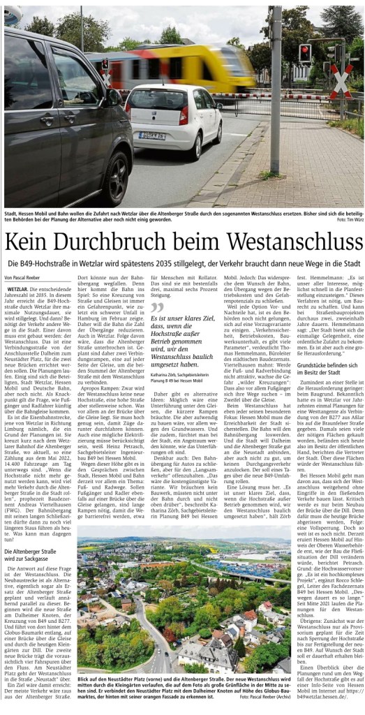 Gerade der zweite Artikel gibt mir wenig Anlass, auf die Vernunft der Beteiligten zu hoffen. An diesem Artikel kann man erkennen, dass das es sehr viele Sachzwänge gibt und die Planer der Stadt Wetzlar mit einem hochkomplexen und daher fehleranfälligen Sachverhalt auseinandersetzen müssen. Die sehr ambitionierte Aufgabe, verschiedene Verkehrsteilnehmern gerecht zu werden, nicht zu wissen, welche Verkehrsströme in Zukunft fließen und dabei noch die Belange der Anwohner im Blick zu halten, wird zu Enttäuschung bei den Anwohnern und Verkehrsteilnehmern führen.